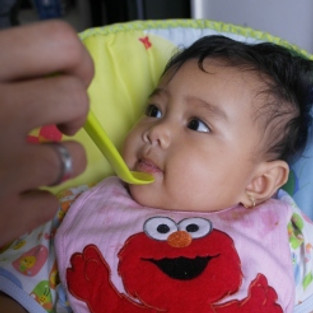 I have been looking forward for this! Amelie’s first meal. Yeay. Yesterday, she turned 6 months old, and it’s time for her to start having a meal in addition to breastmilk. The doctor suggested that we should begin with pear or papaya. I bought both, but I think the papaya was not ripe yet, so we use pear. We cooked the pear and then mash it using blender. Amelie loves it. She kept trying to hold the utensil and move forward if I wasn’t quick enough to spoon her the next pear porridge.